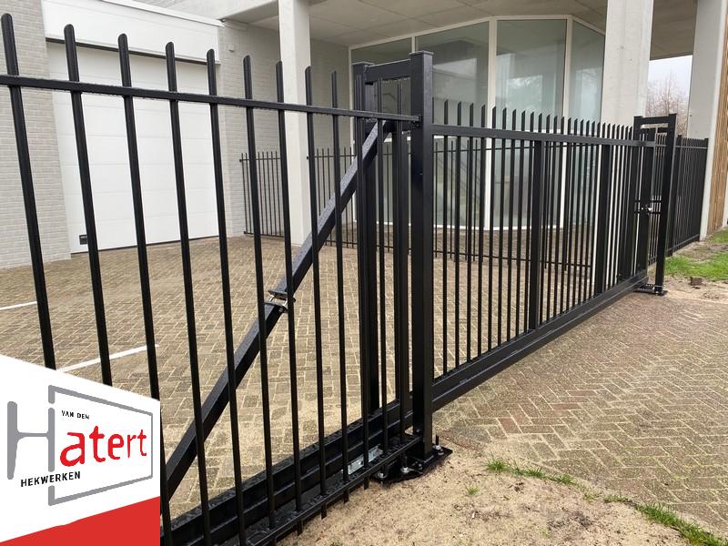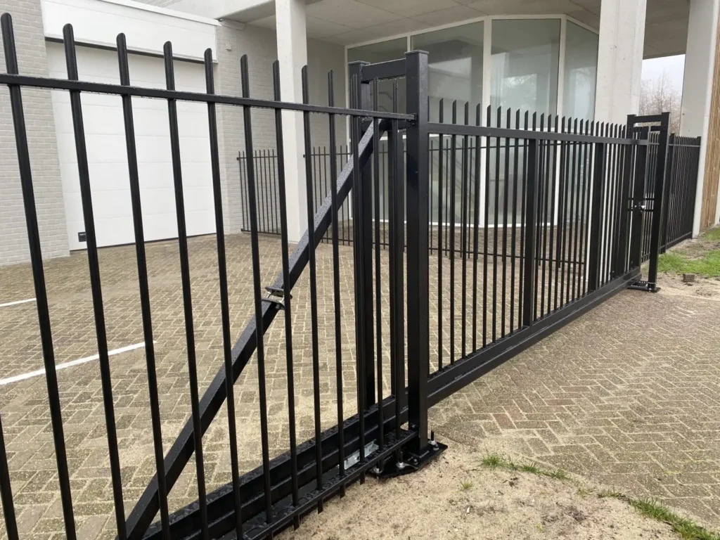 Een schuifpoort met doorgestoken spijlen heeft een krachtig en stoer karakter. U kunt kiezen voor ronde of vierkante spijlen, die recht of in een hoek gelast worden. Daarbij is ook de afwerking naar wens: recht of afgeschuind.