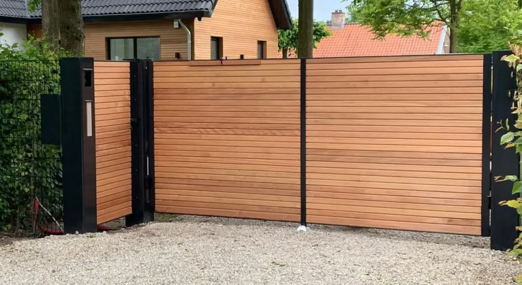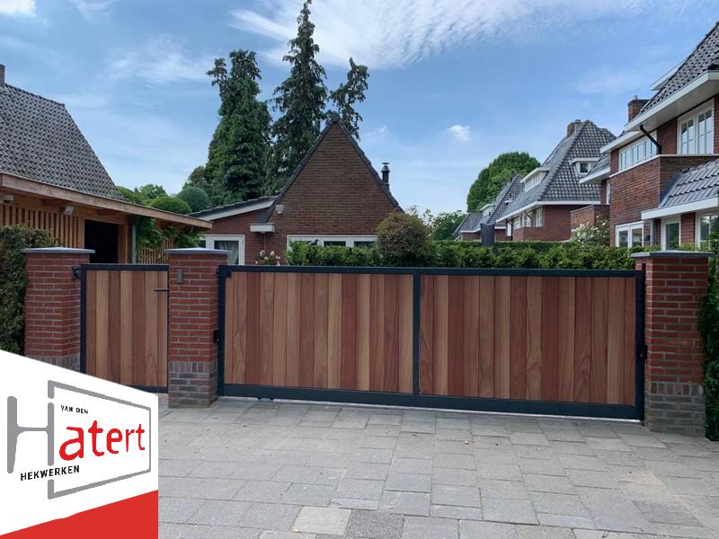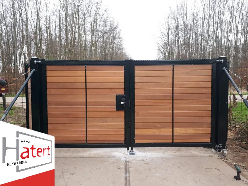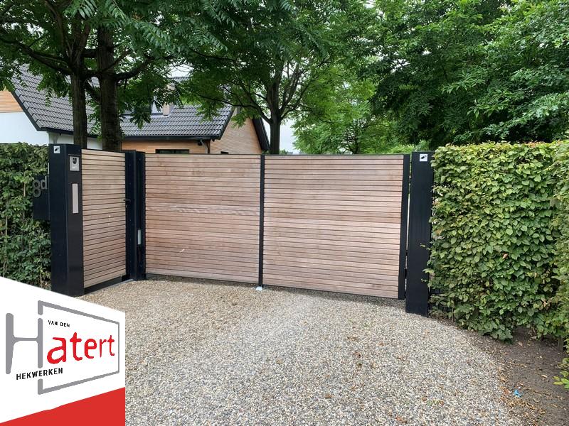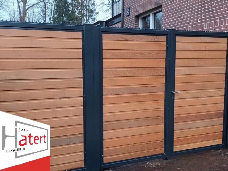 Deze sierpoorten combineren de robuustheid van metaal met de warme uitstraling van hout. Het stevige metalen frame en de bijpassende poortpalen vormen de basis, terwijl het binnenwerk wordt ingevuld met een houtsoort naar keuze. Zo ontstaat een stijlvolle en duurzame poort die zowel modern als natuurlijk oogt.